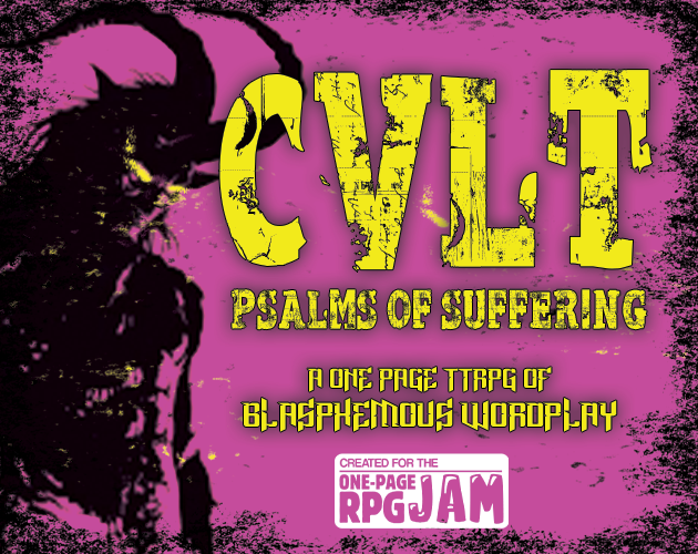 CVLT: Psalms of Suffering is a one page, Scrabble based TTRPG of ancient gods and blasphemous word-play. Using prompts (Dark Omens), your unholy Domains, and of course Scrabble tiles, forge divine words and grow you Cult. For a god is only as powerful as his following after all.